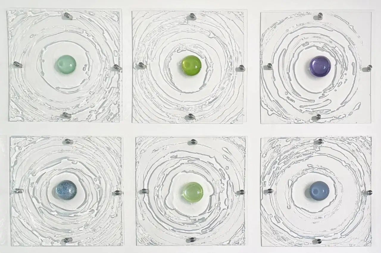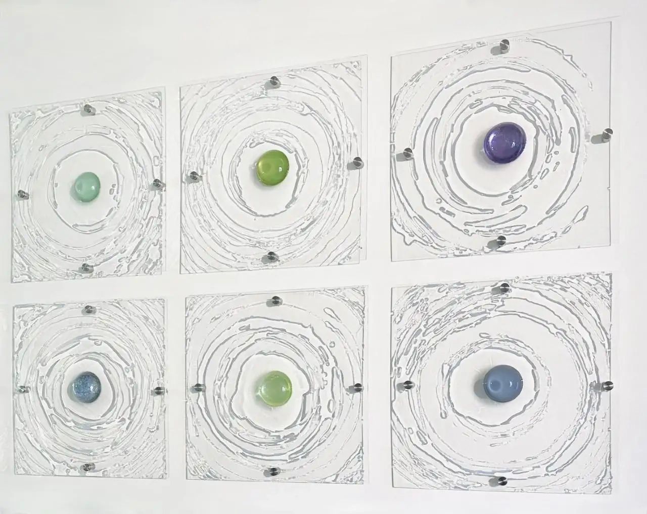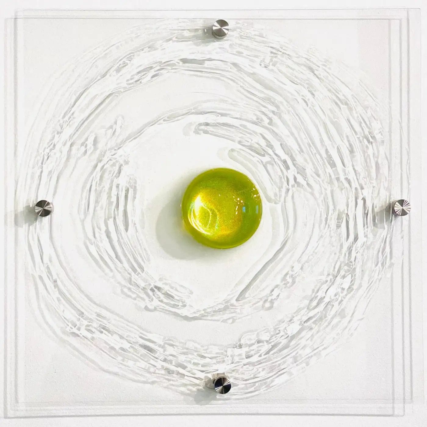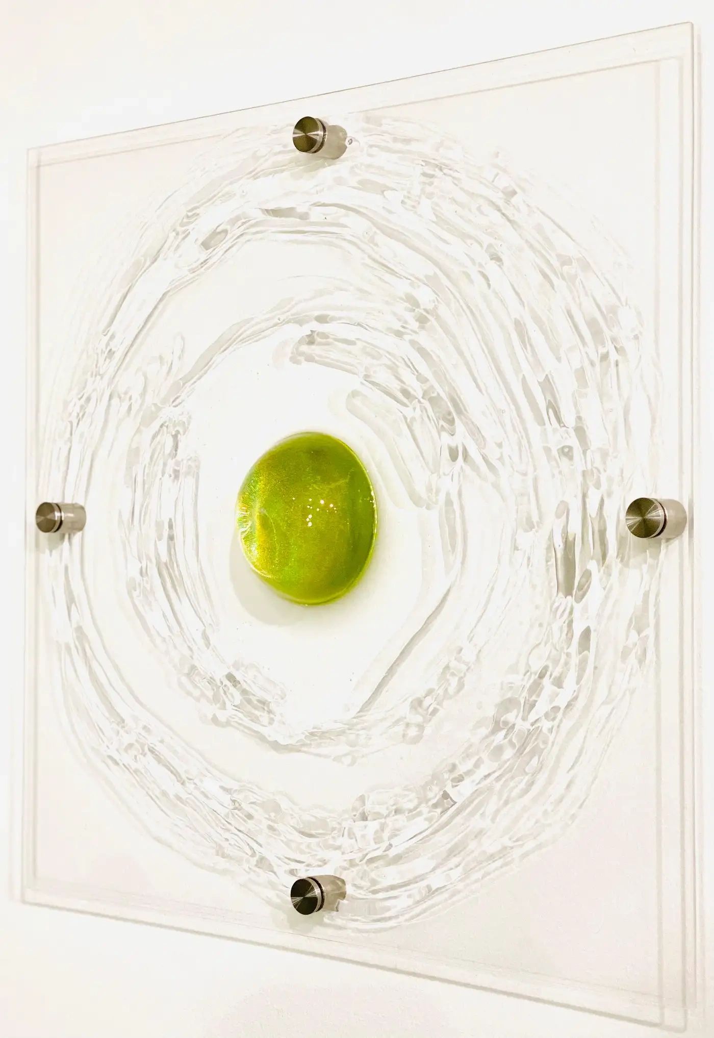 "Some have called my art "Liquid Rhythms". I am an experimenter at heart. What you will find here is a collection of variations on the theme of water and memory. For more than a decade, I have worked primarily with resins and water concepts in one form or another combining these non-traditional, industrial materials with traditional art mediums where inventiveness pushes my art constantly into new forms. The interesting thing about combining these materials is that often I end up inventing processes and forms no one else does. The resulting work can be deceptively simple but is often very intricate and involved. I like the contrast in my work between the quiet, the bold and the ethereal."